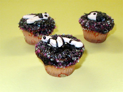 | 30 mini cupcakes for Alec's 4th birthday school class . They are vanilla with a dipped chocolate glaze and sugar crystal sprinkles. On top are chocolate wafer "bugs." Lesson learned: "Fill mini muffin cups with a pastry bag -- one air bubble in a cupcake and it's totally unstable." | The repeat of the whale cake for Alec's 4th birthday. He likes pink. Devil's food cake with butter/shortening icing. Compare to the one above -- I'm getting more agressive with the decorating. Lesson learned: "Small children always want a piece with whale icing on it -- so make the main decoration big. " |